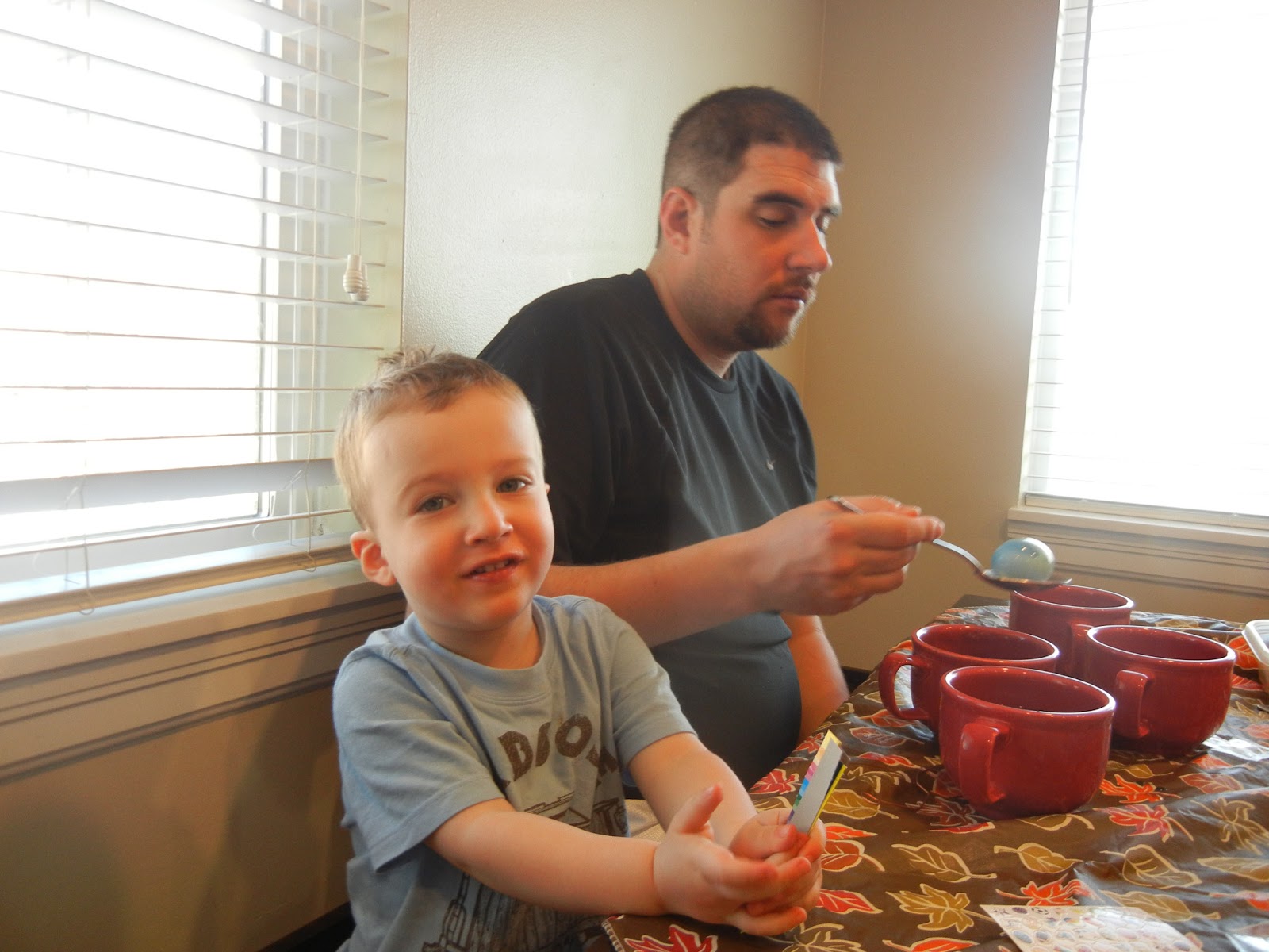 Saturday morning we kicked off the weekend eating chocolate chip muffins and dying eggs with Crew for the first time. He didn't like waiting for the colors to get deep, so to be honest, he spent most of the time playing with playdough.